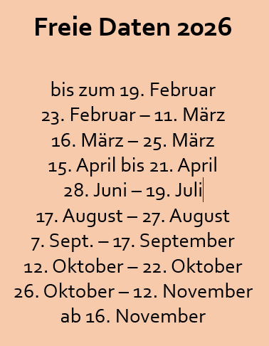 Für weitere Infos, wie zB. freien Daten, Vertragsbedingungen etc. einfach ein Mail an info@centroarte.ch